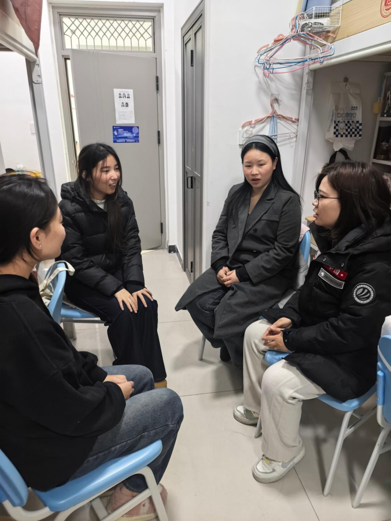 宿舍里暖意融融,辅导员与同学们围坐畅谈,大家从期末复习方法聊到备考心态,从寒假规划谈到未来发展。辅导员耐心倾听学生的困惑,针对考前焦虑给出调节建议,围绕大学生活中遇到的问题答疑解惑。面对面地交流拉近距离,让关怀直达心底。