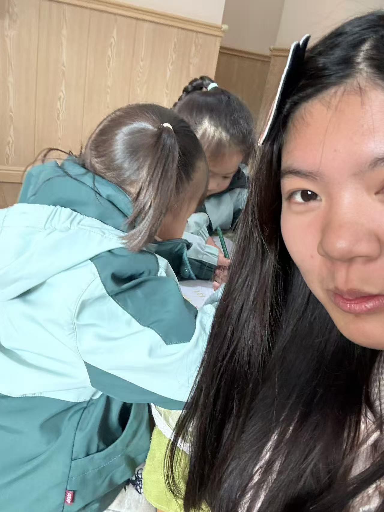 总结:这次“守护童心”志愿看顾活动,是我第一次以志愿者身份深度陪伴学龄前儿童。我的主要工作是协助老师维持课堂秩序,在孩子们进行绘画、手工等活动时提供一对一的帮助。