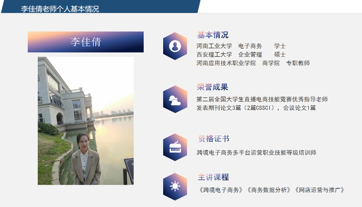 目前跨境电商专业教师是一支充满活力与创新精神的团队。与此同时,老师们也在不断的学习、培训,及时更新知识技能,以便向学生传授行业最新的知识、技能。