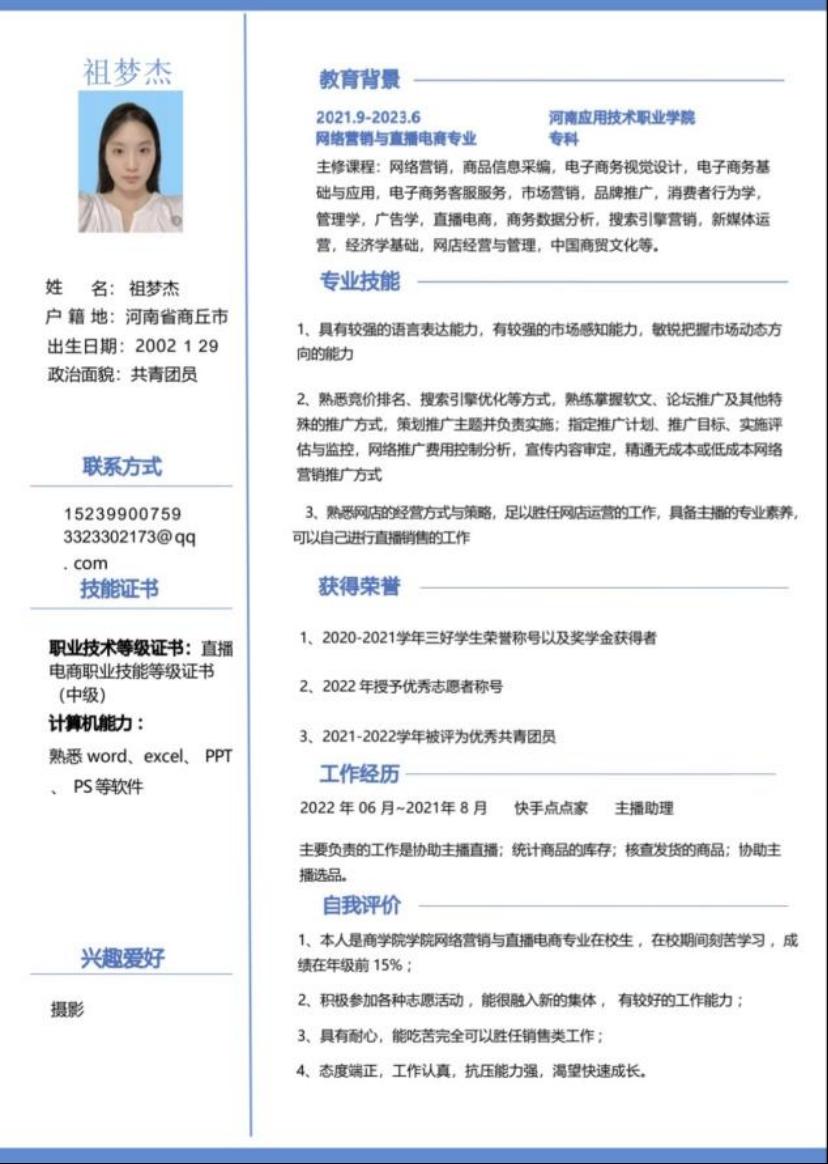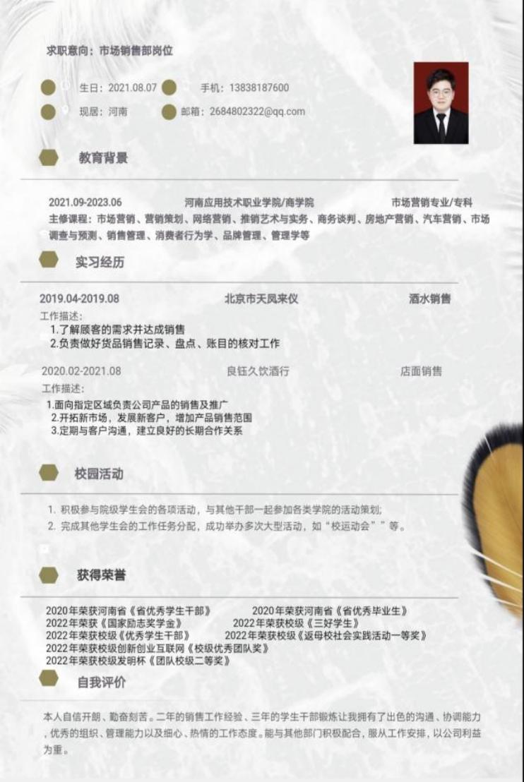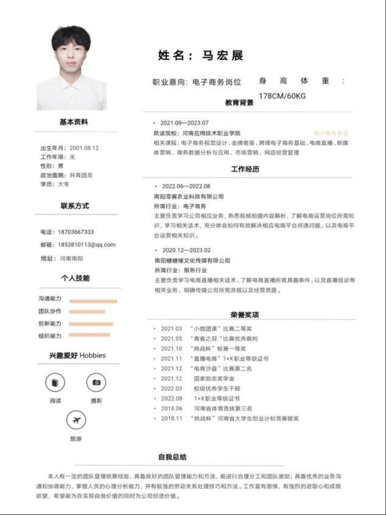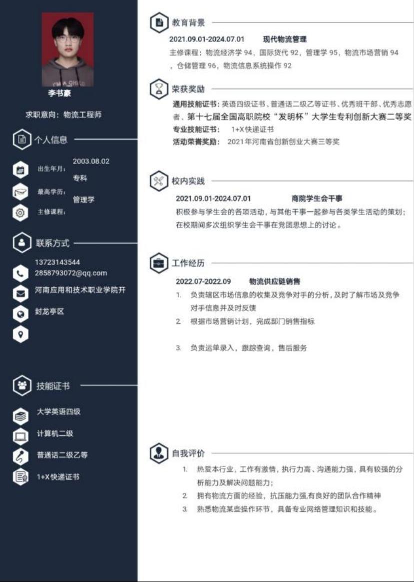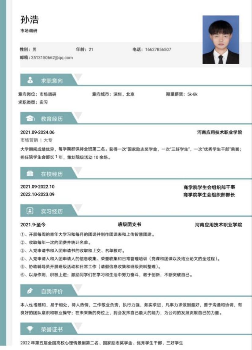 为帮助学生增强就业意识,普及就业技巧,增强就业技能,充分做好就业准备,kaiyun登录中国入口登录举办“第六届大学生简历设计制作大赛”,通过比赛大多数同学能够掌握简历设计及撰写要领,同学们的作品外观设计巧用心思,整洁美观又能凸显专业及个人特点。让我们一起来看看部分获奖者的优秀简历吧。
